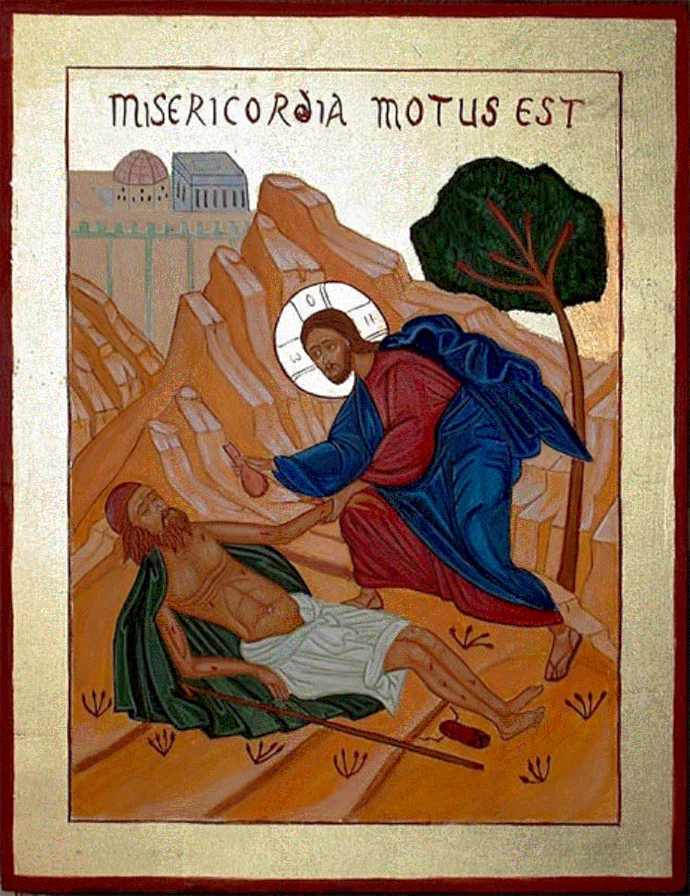Gesù racconta una storia, in cui quattro persone giocano ruoli diversi: l’uomo mezzo morto, vittima di un’aggressione, un sacerdote, un levita e un Samaritano, che s’imbattono nello sventurato. Non c’è un giudizio nei confronti di coloro che passano oltre senza fermarsi: la legge proibisce di accostare un morto quando si va o si torna dalla celebrazione del culto. Dio e gli altri vanno distinti, in questo caso diventano distanti, persino alternativi.