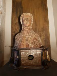 – il reliquiario in legno (XV secolo) che rappresenta Santa Ubaldesca (1136-1205), una santa monaca originaria della campagna pisana (Calcinaia) che, operando nell’ospedale adiacente alla chiesa, dedicò la sua vita alla cura di ammalati e pellegrini. Si tratta di una figura molto popolare soprattutto nelle campagne, che gode tuttora di grande devozione.