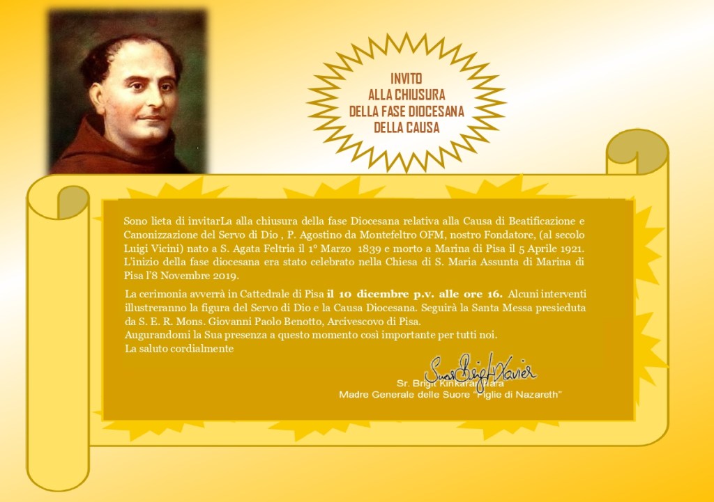 Continuano le ricerche storiche e chi fosse a conoscenza di fatti o in possesso di documenti utili alla Causa è pregato di mettersi in contatto con la Postulatrice, Sr. Judit Puthenparambil all’indirizzo: maryjuditantony@gmail.com.
